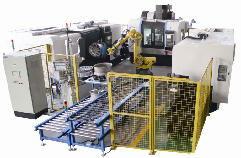2016年,濟南一機與兄弟公司蘇州德邁科公司技術(shù)協(xié)同,聯(lián)合推出了“機器人+高檔數(shù)控機床”組合智能制造新模式。在汽車輪轂加工機床市場,公司以全系列高端機床產(chǎn)品先后推出了“品字形”“地軌L型”和“桁架式”三款汽車鋁輪轂加工智能化生產(chǎn)線。該生產(chǎn)線不良品率下降約35%,實現(xiàn)節(jié)能增效約50%,并以其高精度、高剛性、高可靠性和自動化、智能化,突破了國外技術(shù)壁壘,打破了國際同行的市場壟斷,替代進口,領(lǐng)跑細分行業(yè)發(fā)展。產(chǎn)品受到汽車鋁合金輪轂加工機床市場的廣泛歡迎,產(chǎn)品供不應(yīng)求。